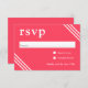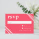 This vibrant bright coral wedding RSVP enclosure card has white triple lined corners and white text. The rsvp heading features prominently on the upper left of the card for a chic contemporary look. Personalise with your required response date. This popular colour scheme sets the tone for a lovely wedding celebration with matching invitations and stationery items. You can change the colour of this enclosure card to match your wedding colour scheme by choosing "click to customise further" at the bottom of the text template.