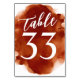 Simple Modern Burnt Orange Watercolor Table Number