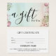 Simple & Modern Business Gift Certificate Card.