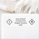 Return address design featuring diamond shapes on either side flanking your return address with couple's initials inside the diamonds. All colours can be modified as desired. Design by Holiday Hearts Designs (rights reserved).