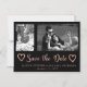 Modern faux rosegold glitter brush script black save the date wedding magnetic card with 2 photos collage - one vertical / portrait orientated and the other horizontal / landscape and two doddle hearts. ++++++++++++++ Personalise it with your photos, names and wedding date!