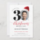 Simple Modern Christmas 30th Birthday Party Invitation. Celebrate a milestone Christmas birthday in style with this festive invitation design! Featuring a classic red and white colour palette, a playful Santa hat illustration, and space for a photo, this invitation blends holiday cheer with birthday excitement. Perfect for those with a December birthday, it captures the magic of the season while honouring a special year. With a clean, elegant layout and whimsical details, it's the ideal way to kick off a memorable Christmas birthday celebration.