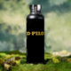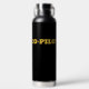 Simple Modern ‘CO-PILOT’ Typography in gold font on a black Water Bottle. Text can be customised to a different word.