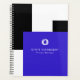 A professional notebook with a pop of colour in a simple yet bold cobalt blue, black, and white colour block pattern makes a striking display with graphic appeal. Suitable for any type of business, there is a sample decorative logo on the front that you can replace with your logo or leave as is. Personalise with your name and title or other desired text.
