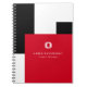 A professional notebook with a pop of colour in a simple yet bold red white and black colour block pattern makes a striking display with graphic appeal. Suitable for any type of business, there is a sample decorative logo on the front that you can replace with your logo or leave as is. Personalise with your name and title or other desired text.