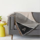 A stylish and feminine blanket with a wide stripes pattern in a beautiful colour palette of ivory beige, blush pink, taupe grey and black placed at an angle. The designer upscale look is simple and minimal with modern flair. Personalise the monogram initials with your initials.