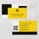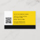 A professional business card with a pop of colour in a simple yet bold school bus yellow, white, and black colour block pattern makes a striking card with graphic appeal. Suitable for any type of business, there is a sample decorative logo on the front that you can replace with your logo or leave as is. Personalise with your name and details. The back of the card has a QR code for including your website URL. If you prefer not to use a QR code on your business card, you can delete this design element by selecting "Edit using Design Template" where all the layers of the design will be available to add or delete any lines or objects you wish to remove.
