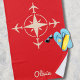 Imagine showcasing your passion for Aviation or Travel with this simple. modern beach towel. Design features airplanes flying in many different directions from a compass. Customize it with your name or initials, change the default red background color, or change the color of compass image from cream color to your favorite color. Perfect birthday present for a Pilot, Aviator, or travel lover.