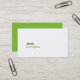 A simple but modern design with black and green text on a crisp white background. Text and background colour can be changed.