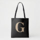 Simple Modern Custom Initial Black and Beige Tote Bag