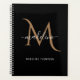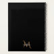 Design feature minimalist decorative monogram with trendy script calligraphy. Simple minimalist black and gold home office planner.