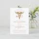 Celebrate your achievement in style with this modern doctor graduation party invitation, featuring a sleek design with a caduceus, and calligraphy script initials monogram. The clean design adds a touch of sophistication. Available in print, as a digital download, or both.