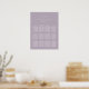 This minimalist and modern wedding seating chart features modern lettering in white on a dusty lilac/purple background. You can find matching products at my store.