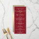 Simple, elegant, minimalist wedding menu with gold rope heart , deep red background and gold foil back side.