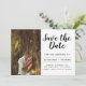 Modern and Elegant Photo Save the Date Wedding Card. The save the date invitation card includes script typography and chic and simple design on a White background that you can add your customised engagement photograph picture to.