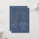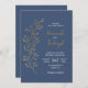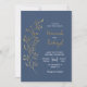 Simple Modern Gold Leaf Blue Wedding Invitation