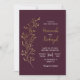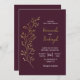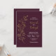 Simple Modern Minimalist Gold Leaf Burgundy Wedding Invitation.