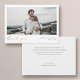 This simple, stylish modern photo wedding thank you card template features 'thank you' and your names and date beneath your photo. We've given this minimalist design a warm touch with 'thank you' in an elegant gold tone called California Gold in a relaxed, all lower case script that feels intimate and familiar. This element of the design can't be altered. But you can change the colour and font of any of the other text. Your names on the front are in a slightly softened black by default. On the front, we've made the background transparent to let the colour of the paper simply serve as the base tone. On the back we've chosen a background hue that isn't quite white, it's a very light grey that's mostly white called White Smoke. You can change this by picking another colour in the editing tools if you'd like. And we've picked a very dark shade of grey that's mostly black as the default colour for the text on the back. We've put some sample text on the back for you to replace with your own message as you see fit, but please don't feel restricted by this. If you prefer to delete our sample text entirely and keep the back totally blank so that you can write a handwritten note on each card instead, you can do that. Or you might want to replace our text with your own message of gratitude and your own closing and then hand sign your names when you receive the cards. You can also change the font and text size and you might change the case from the all uppercase look we added. Just please be sure in any event to delete our sample/placeholder text on both sides of the card, and please remember to replace the placeholder photo on the front with your own. Use the intuitive design tools, your favourite photo and your inspiration and make it uniquely yours! And please browse our wedding thank you collection for more simply elegant modern wedding thank you card motifs!
