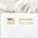 Modern custom address label design featuring elegant gold script typography, complementary gold grad cap on a clean white background. Customise with your grad's name, class year and return address.