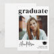 Trendy black bold typography plain white modern graduation announcement template with one custom photo, signature script name, class of year, school, and graduate cap. ++++++++++++ Easy to personalise with your details and picture. +++++ Please note that both colours can be changed after selecting CUSTOMIZE this design option.
