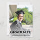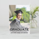 Graduate in a bold font, black and all capital letters. The high school and year are smaller size in the same font. The graduate name really stands out, making them the star, as it should be. The photo will automatically fade out at the bottom so the card is easily read. Nothing for you to do to your photo except upload.