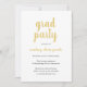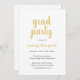 Simple graduation party invitation featuring a classic design with "grad party" and the graduate's name in a thick gold script handwriting over a white background. An elegant invitation with a modern minimalist flair for a girl graduate.