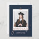 Navy Blue | Modern Simple Graduation Party Invitation. This stylish graduation party invitation features an elegant rose gold script and a photo for personalising on the front. The back includes a rose gold graduation cap with text for personalising. The photo is designed to look like a vintage snapshot while still being stylish for today's graduate.
