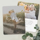 This simply stylish custom photo wedding thank you card template features a warm, minimalist, modern design. The default shape is rounded corners, but standard corners also work wonderfully with this design, so try both looks and see which one grabs you! We've added a semi-transparent grey layer between the photo layer and the text layer to allow the text to stand out more by reducing the sharpness of the photo. So when you add your photo in editing mode, you'll notice this change in its appearance. The front features your photo, first names and date and a 'thank you' message in a unique script that we first wrote by hand and then adapted for use here. The front text is white. When you edit the front to show your own names, you might change the format to show your first names with last name, or 'Mr. and Mrs......' or whatever suits your style. Or you might choose to delete our sample date without replacing it with your own date, for a simpler look. On the back, we've included space for you to add a second photo of your choosing. So please remember to replace our sample photo on the back with your own photo, as well as the photo on the front! We've set the background of the space below that photo on the back as transparent, so that the colour of the paper will simply serve as the base colour. You can choose a colour for the background, if you prefer. The default text colour on the back is black, but you can change this if you prefer another colour. You can also change the font and the text size. We've put some sample text on the back for you to replace with your own message as you see fit, but please don't feel restricted by this. If you prefer delete our sample text entirely and keep the space under the photo on the back totally blank so that you can write a handwritten note on each card instead, you can do that. Or you might want to replace our text with your own message of gratitude and your own closing and then hand sign your names when you receive the cards. In any case, please do remember to remove all of the sample/placeholder text on both sides as well as both of the sample photos. We've chosen matte rather than semi-gloss as the default paper choice, as it is well suited to writing your own message on and won't smudge. You can of course change this to semi-gloss, or you might consider upgrading to something with a texture such as zazzle's 'Laid' or 'Felt White', which can add a feeling of warmth and depth. We hope you'll enjoy experimenting with various aspects of this stylish modern wedding thank you card template's appearance and make it uniquely yours with the intuitive design tools, your favourite photos and your inspiration!