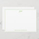 This modern, clean minimalist custom flat note card can be personalized with the addition of your initials and name. The thin line border is in pear green as is the typography.