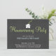 Add a modern edge to your housewarming party by sending out these adorable housewarming party invitations! The front of the invite has a dark textured background. At the top of the invitation is a cute white house icon, with pink hearts floating from the chimney. Customisable text allows you to add your own party details.