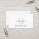 Modern lash specialist business card featuring a soft screened back gray monogram initial paired with elegant modern script typography, created for beauty professionals who prefer a refined, minimal look. Includes a clean title line and Lash Extensions, Fills, Volume subheading, offering a polished identity for lash artists for client interactions, networking, and bookings.
