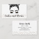 Modern business card for lash and brow artists. The business card front has a simple illustration of a woman with beautiful long, lush eyelashes and full, arched eyebrows. Under the illustration are the words "Lashes and Brows" in a script typography atop gold faux sparkles. The back of the card also has the gold faux sparkles plus the name of the lash/brow artist or salon, followed by the phone number, address, e-mail address and website address. All text can be customised as you'd like. All text is customisable to your needs.