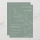 This elegant minimalist wedding invitation template, features line art leaf branches on a sage green background. The modern calligraphy script font pairs beautifully with a traditional serif font. A beautiful invitation for a fall wedding.