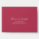 Expectations met; I liked that I had the opportunity to include our address on the back of the envelope. This color matched very well with my save the date. The color was the same as shown above. I had our address labeled on the back of the envelope and the font/printing met my expectations.