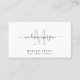 Modern makeup artist business card featuring a soft screened back gray monogram initial paired with elegant modern script typography, created for beauty professionals who prefer a refined, minimal look. Includes a clean title line and Bridal, Beauty, Editorial subheading, offering a polished identity for makeup artists for client interactions, networking, and bookings.
