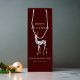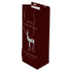 A hand painted watercolor crystal reindeer on an elegant minimalist holiday wine bag in classic burgundy