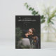 This minimalist modern photo wedding save the date postcard template has a simple, clean look with your names at the bottom in a script font. You might prefer another font style, script or otherwise, for your names or another part of the text. You can also change the size and colour of the text. Note however that when you edit this card to include your own information, some text fields such as the date and wedding location are the same for both front and back, so when you change this on one side, it will automatically change on the other side as well. This limits your ability to delete certain text or change the font, etc., as the change will take effect for that text field on both sides of the card, which you may not intend. Your names, however, can be edited separately on each side, as each side for the names has a distinct text field in the editing mode. Also be sure to notice and change the sample return address info to your own info, as it is rather small and is down at the bottom of the back of the card, easily overlooked! You can remove the lines for the addressee's information and/or the 'deliver to' text there if you want a simpler look.