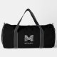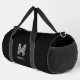 This sleek and modern duffle bag combines style and functionality. The design features a monogrammed initial and name in a contemporary font, displayed prominently on a clean black and white background.