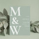 Simple Modern Monogram Sage Green Wedding Invitation. Features bold monogram typography and minimal graphic design. Personalise text with all the details of your special day.