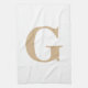 Simple Modern Monogram Tan and White Tea Towel