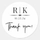 A modern monogram with both couples initials and thank you underneath are the features on this wedding favour label or envelope closure.