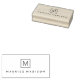 Modern, minimal monogram rubber stamp with your monogram initial inside a square border and the name below in a modern sans serif font.