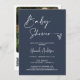 Simple Modern Navy Blue Baby Shower QR Code Photo Invitation