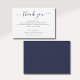 Personalise this simple navy blue card with your thank you message and details. Design features navy blue script with complementing background colour on back of card. Easy to customise all text.