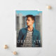 Modern boy graduation announcement card featuring a simple and masculine design with "Graduate" in large bold typography along with the graduate's name, year and school name over your favourite full bleed vertical photo. The backside has a square picture with your personal message below in a navy blue serif font over a white background.