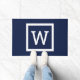 Simple Modern Navy Blue Graphic Border Monogram Doormat