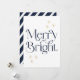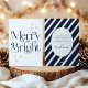 Simple Modern Navy Blue Stripes Merry and Bright Holiday Card