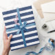 Simple Modern Navy Blue White Striped Minimalist Wrapping Paper