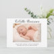 Cute modern personalised newborn baby photo birth announcements with a script name and birth stats. Simply add your own information. Replace this sample photo with your own baby photo.