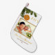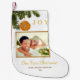 Modern Simple Elegant Gold Citrus Christmas Fresh Lemon orange JOY our first Christmas newlywed Holiday photo stocking featuring beautiful dried lemon/orange ornament hanging in a Christmas Cypress Branch. You can customise this fresh newlywed christmas stocking with your own text and photo.
